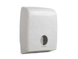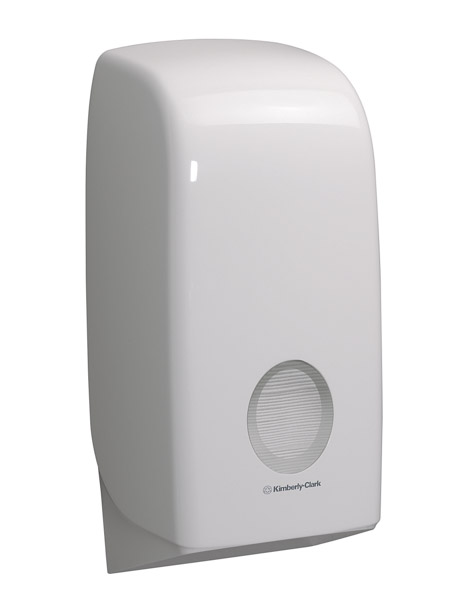 Dispenser di carta igienica piegata ideale per gli ambienti d'ufficio. Compatibile con un'ampia scelta di prodotti per l'area bagno. Linea moderna ed elegante. L'unità presenta una finestra per valutare il livello di carica. Esclusivo dispositivo brevetta