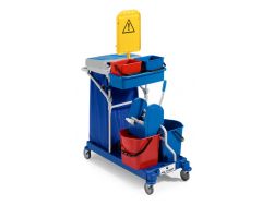 Carrello utilizzato per la raccolta dei rifiuti e per il lavaggio e/o disinfezione in ambienti ospedalieri, case di riposo e studi medici con il sistema di impregnazione al momento: l'innovativo dosatore meccanico