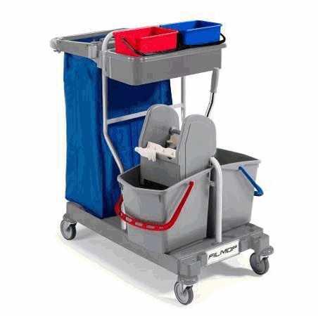 Ideale per ambienti dove è necessario l’occorrente per le operazioni di spolvero, raccolta rifiuti, lavaggio pavimenti e superfici, tutto in un carrello.
