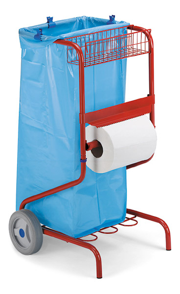 Carrello portacarta con portasacco lt. 120 verniciato, completo di cestino, pinze fermasacco con molla e ruote DIAMETRO 175 mm. Per la raccolta dei rifiuti in officine e/o distributori