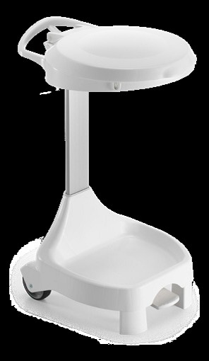 carrello portasacco in plastica bianco, con 2 ruote e 2 piedini,utilizzato per la raccolta rifiuti. Ideale da posizionare sotto i piani di lavoro. Misure consigliate per il sacco: 75x110 cm.