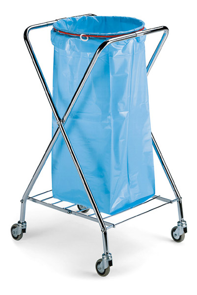 Carrello portasacco a "x" cromato con attacco rotondo, elastico fermasacco e ruote piroettanti DIAMETRO mm.80 per la raccolta dei rifiuti