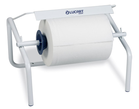 Dispenser a muro/tavolo in tubo metallico per strofinacci a rotolo e multiuso. Chiusura ad incastro. Utilizzabile in ambienti sottoposti a normativa HACCP.