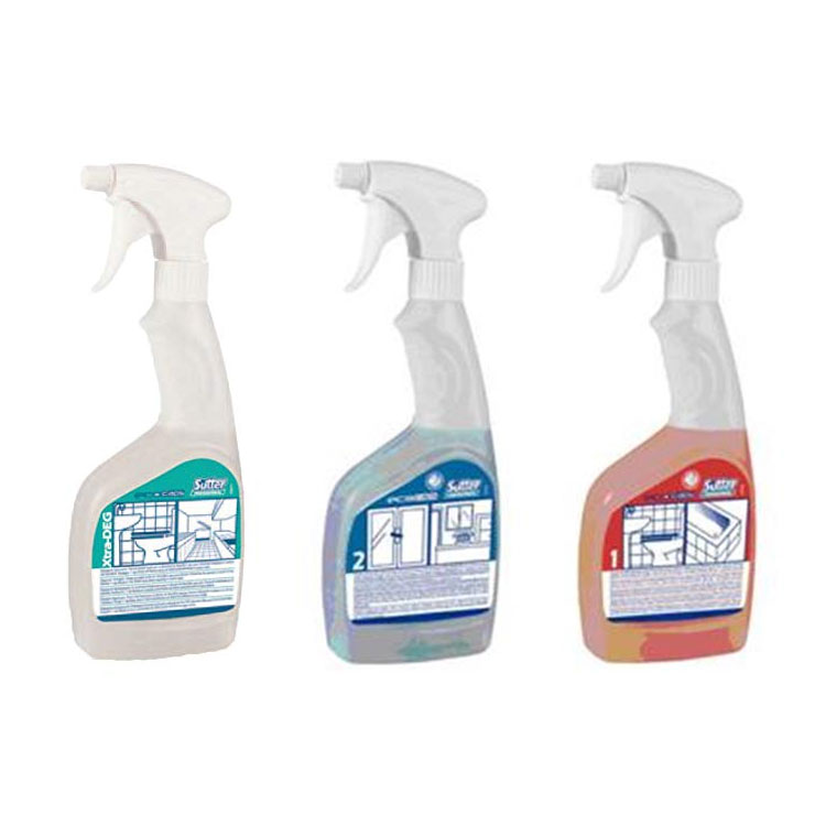 Flaconi vuoti etichettati e completi di spruzzatore per l'utilizzo dei prodotti ECOCAPS in capsule solubili. Formato da: 2SU059+2SU060+3SU002.