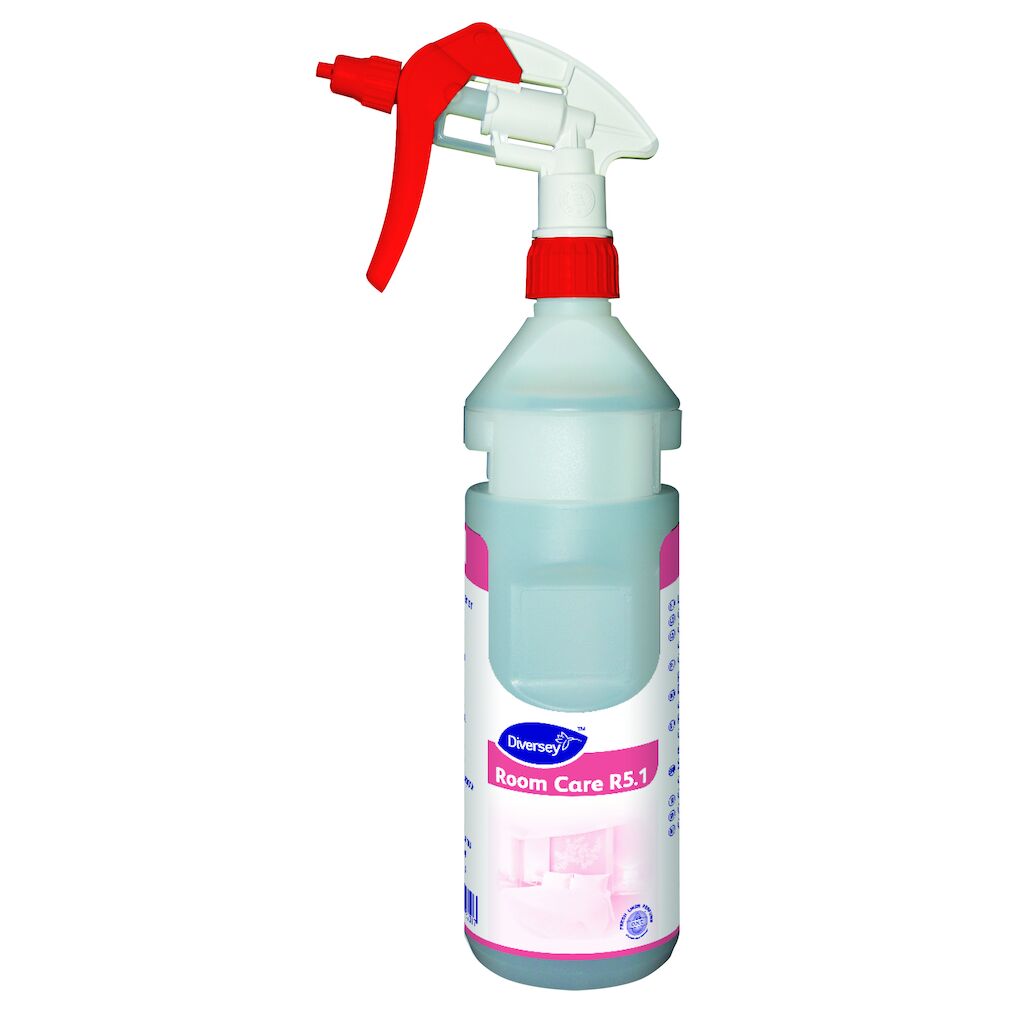 Bottiglia vuota da ml 750 con etichetta e spruzzatore per preparare la soluzione pronta alluso dei prodotti Room Care. Da utilizzare con Dosatore DQFM.