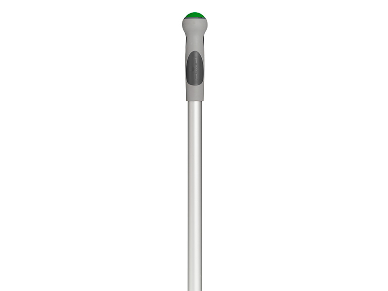 Manico telescopico in alluminio anodizzato in 2 pezzi con impugnatura ergonomica grigia con tappo verde. Allungabile da cm 102 a 184.