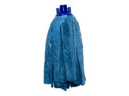 Ricambio in cotone filato grosso con attacco a vite in plastica blu. Indicato per il lavaggio di pavimenti. Utilizzabile solo con manici con filetto.