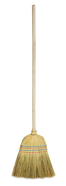 Scopa di saggina con manico in legno, cucitura a 4 fili.