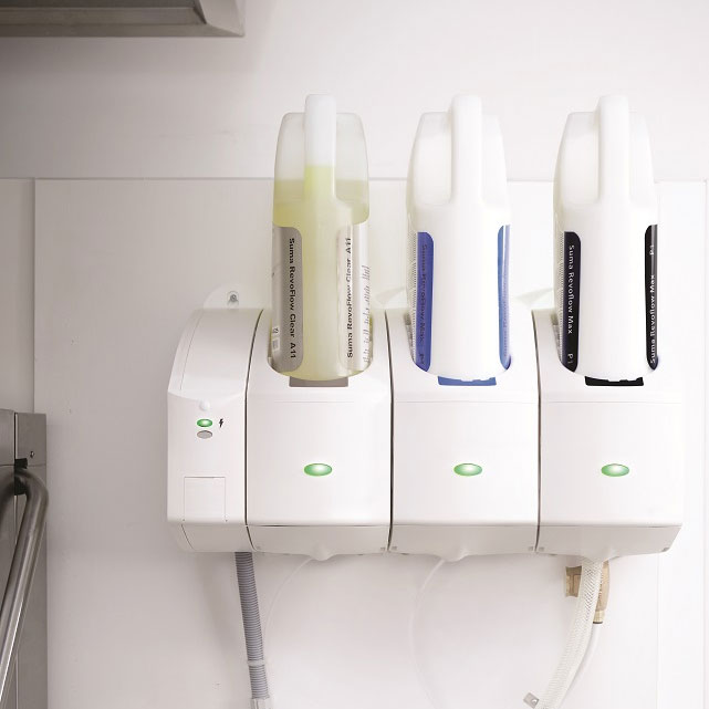 Suma Revoflow è l'innovativa apparecchiatura di dosaggio per i prodotti Revoflow liquidi e in polvere per il lavaggio meccanico delle stoviglie. Suma Revoflow è versatile e il dosaggio può essere a controllo conduttimetrico, proporzionale o temporizzato. I parametri di funzionamento vengono impostati tramite il programmatore digitale Uniview dal personale tecnico Diversey.