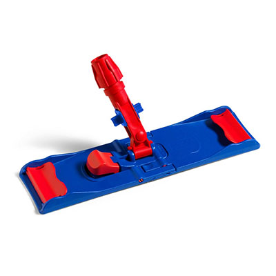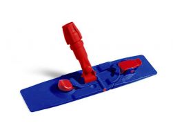 SPEEDY telaio pieghevole in plastica per lavaggio pavimenti utilizzando frange provviste di alette. Per il risciacquo e la strizzatura della frangia è sufficiente fare pressione con il piede sul pulsante rosso, il telaio si chiuderà a 180° e la frangia rimarrà ancorata al telaio. Per lo sgancio della frangia sporca è sufficiente aprire le alette laterali.