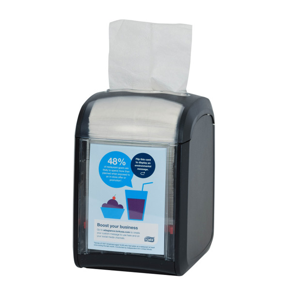 Dispenser da tavolo Tork Xpressnap Fit®, ideale per ristoranti indipendenti e piccole catene di ristorazione che posizionano i tovaglioli sui tavoli o sui banconi. Il sistema molto compatto eroga un tovagliolo alla volta, consentendo di ridurre consumi. Mm.113 x 170 x 141 Capacità 168. La carta che va nel sistema N14 non è la stessa che va nel sistema N10.