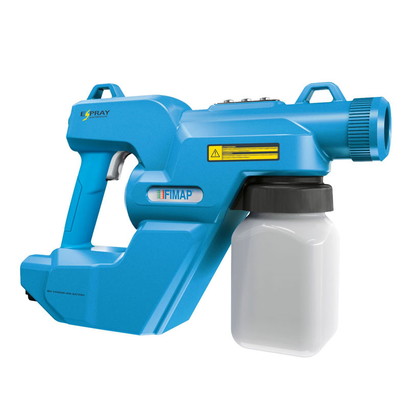 Pistola spray professionale che sfrutta il principio dellinduzione elettrostatica per distribuire sulle superfici soluzioni disinfettanti in modo efficace e uniforme