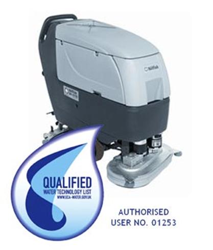 Lavasciuga con uomo a terra, alimentazione a batteria, carica batteria a terra, due spazzole cilindriche, pista di lavaggio 510 mm.