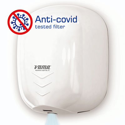 Asciugamani elettrico ECO JET di nuova generazione, superveloce e ad elevata efficienza energetica, con design e produzione made in Italy. Innovazione assoluta per garantire la massima igiene, con azione integrata di lampada UV-C e filtro testato ANTI-COVID come dotazione di serie. Resistenza elettrica regolabile. Ampia gamma di finiture, con cover sia in plastica che in acciaio inox antivandalo. Design contemporaneo di altissimo livello estetico, con dimensioni estremamente compatte.