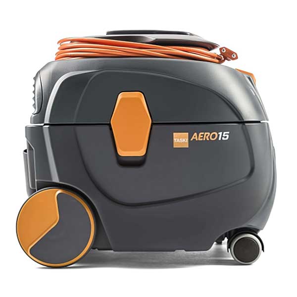 Laspirapolvere ad alta efficienza TASKI AERO 15 impiega una tecnologia allavanguardia con un motore ad alta efficienza. Con la tecnologia brevettata whisper laspirapolvere lavora in modo estremamente silenzioso. Inoltre, la sostituzione di parti come cavi efiltri, risulta semplificato e può essere effettuata dallutente in pochi secondi senza limpiego di alcun utensile. Versione con capacità di 15 litri.