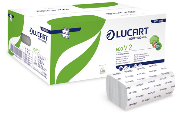 Asciugamani piegati, certificati Ecolabel, in carta rigenerata, macro goffrati. Per l'area bagno a bassa affluenza. Compatibili con dispenser Helix Lucart 892314.