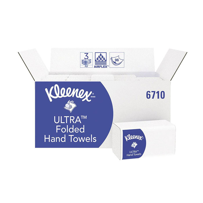 Asciugamani piegati Kleenex Ultra a 3 veli, realizzati con struttura Airflex ad alta assorbenza e resistenza, con certificazione FSC. 15 fascette x 96 Fogli. Per dispenser Aquarius 6945, 6956, 7171 e 9962.