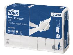 Asciugamani intercalati, certificati Ecolabel, per dispenser sistema H2, soffci e delicati asciugano e trattengono liquidi. del Tork Xpress® Asciugamani intercalati Soft - QuickDry Hybrid bianco.