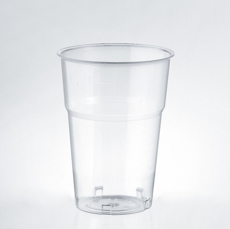 Bicchiere conico in polistirolo effetto cristallo trasparente. Per bevande calde e fredde, temperatura massima di utilizzo 70°C. Tacca a 200cc.