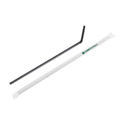 Cannucce pieghevoli nere imbustate singolarmente, lunghezza mm.240, in biopolimero compostabile.
