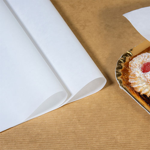 Carta di pura cellulosa. Idonea per confezionare vassoi in pasticcerie, bar e panifici. La lucentezza tipica di questa carta, garantisce alla confezione un incarto dimpatto e di qualità.