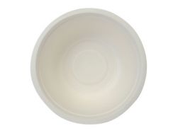 Ciotola bianca monouso in polpa di cellulosa ottenuta da canna da zucchero. Utilizzabile in forno a microonde e freezer. Impermeabile ad acqua e olio. Completamente compostabile in accordo allo standard UNI EN 13432.