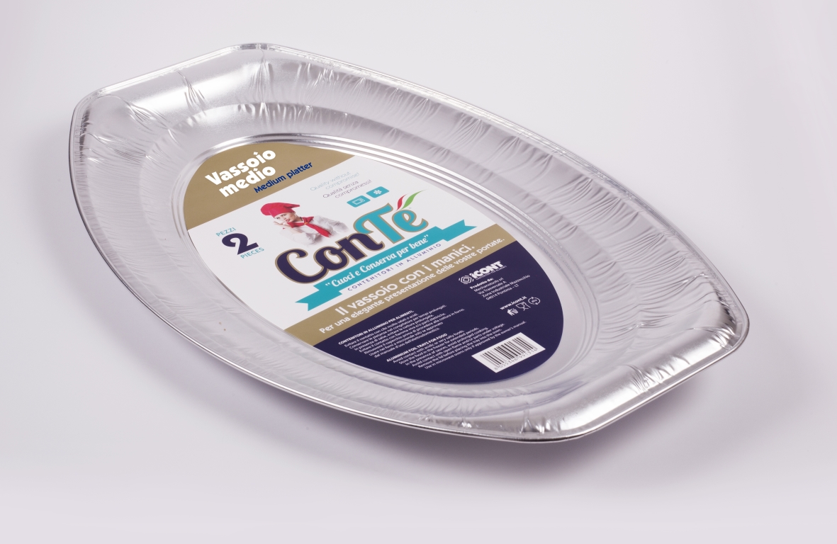 Vaschette in alluminio a bordo G per alimenti caldi o freddi. Utilizzabile in forno tradizionale fino a 350°. Utilizzabile in congelatore. Mm.428X278X26,8