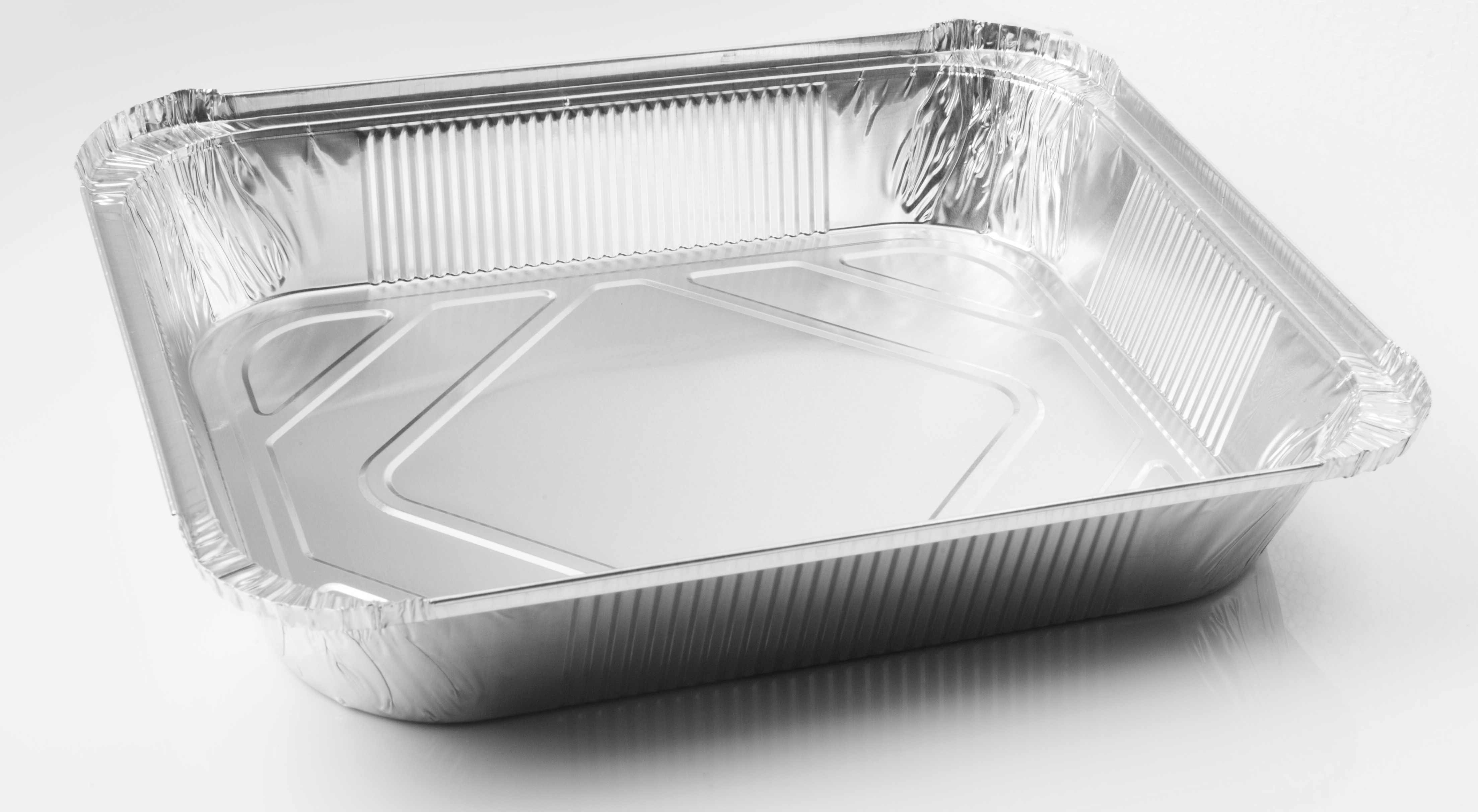 Vaschette in alluminio a bordo L per alimenti caldi o freddi. Utilizzabile in forno tradizionale fino a 350°. Utilizzabile in congelatore. Mm.320X260X50