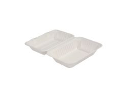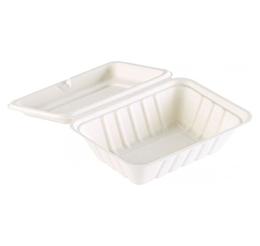 Contenitori da asporto in bagassa con coperchio incernierato, completamente compostabili, ottenuti da sottoprodotti rinnovabili. Adatti ad alimenti freddi o caldi, resistono fino a +100°C e possono essere utilizzati nel microonde.