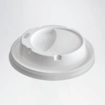 Coperchio bianco con beccuccio per bicchieri cappuccino, realizzato in PS. Per bicchieri in cartoncino laminato 3IS1013,3IS1014,3IS1016.