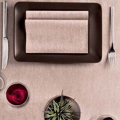 Coprimacchia in carta a secco airlaid, colorazione cappuccino. Certificato PEFC.