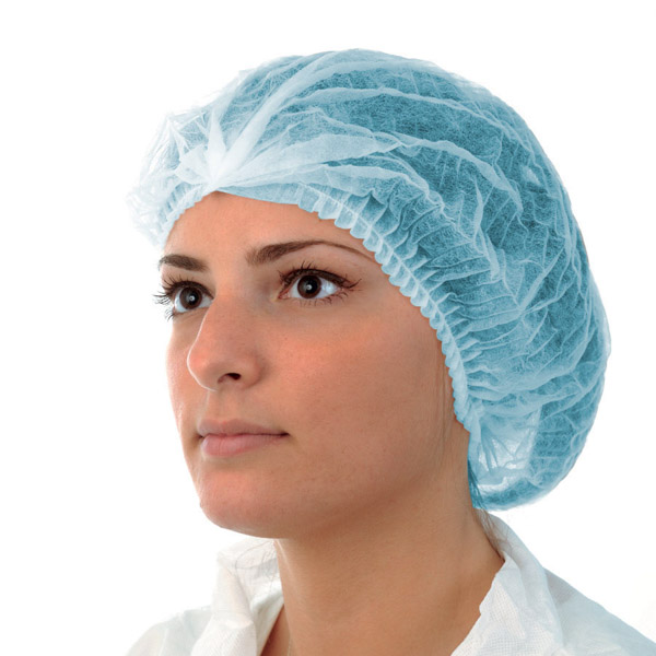 Cuffia in tessuto non tessuto di polipropilene 10 gr/m2, modello MOB CAP con singolo elastico a giro testa.