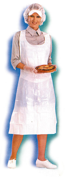 Grembiule a pettorina in polietilene bianco, spessore 25 micron, dimensione cm.115x70.
