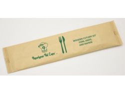 KIT LEGNO FORCHETTA+COLTELLO+TOVAGLIOLO 33X33 CM.22X22 CF.50 PZ.