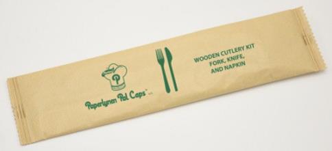 KIT LEGNO FORCHETTA+COLTELLO+TOVAGLIOLO 33X33 CM.22X22 CF.50 PZ.