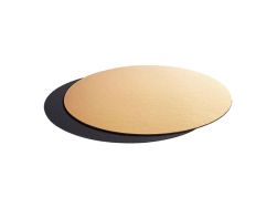 I dischi cappati/smerlati da pasticceria sono tutti di tipo pesante da gr. /mq. 2.200, con bordo ondulato. Sono realizzati in cartone accoppiato a film Oro, con il retro Oro o Nero idoneo per alimenti.
