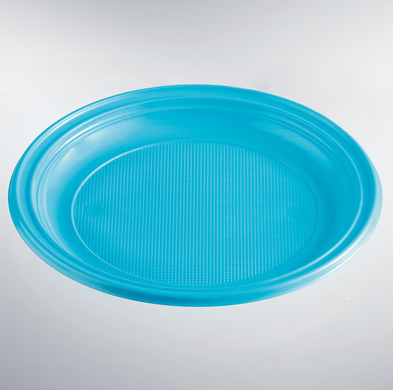 Piatto piano in polistirene colorato per feste.,monouso disponibili in molte varianti ,ottima resistenza e massima capacita'.