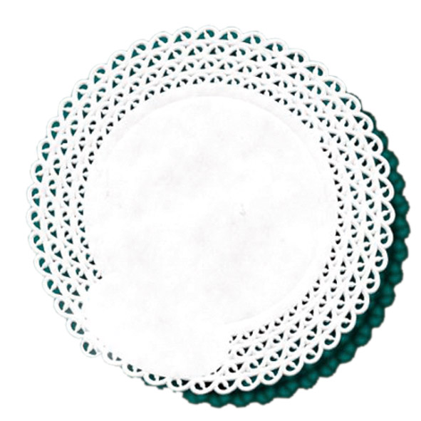 Coprivassoio rotondo in carta lucida con bordo decorato a pizzo. Carta porcellanata da 60 gr/mq.