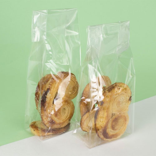 Sacchetti in polipropilene laccato fondo quadro idonei al contatto con alimenti. Ideali per il confezionamento di: biscotti, caramelle, dolci, confetti, cioccolattini, pasta fresca, prodotti tipici, etc. Spessore 35 my.