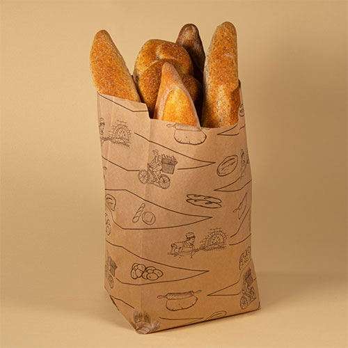 Sacchetto in carta avana monolucida pura cellulosa stampato generico panificio con inchiostro atossico. Il sacchetto Panificio nella versione avana rappresenta un forte richiamo al colore della natura. Un incarto raffinato e di qualità mantiene intatta
