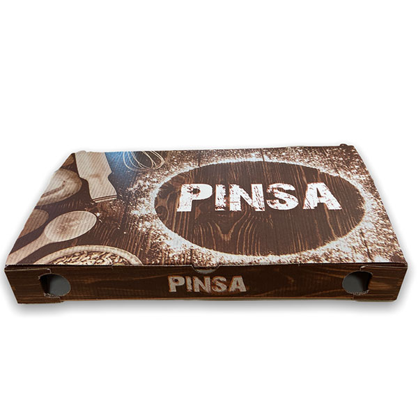 Scatola in cartone per pinsa da asporto, grafica pinsa tagliere generica, in pura cellulosa.
