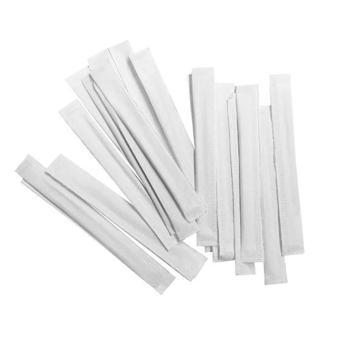 Stuzzicadenti di legno rotondi incartati singolarmente.