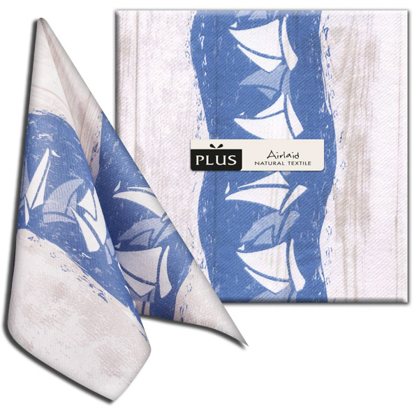 Tovagliolo in carta a secco fantasia con barche. Compostabile, con certificazione PEFC.