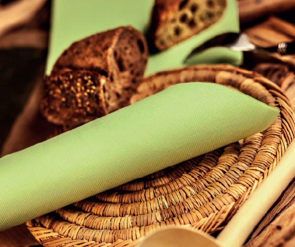 Tovaglioli 2 veli in carta a secco a effetto tessuto, grazie al nuovo sistema di lavorazione della carta, la tecnologia di microgoffratura, che non stressa le fibre. Passaggio ulteriore di incollatura e disegno (goffraincollaggio).