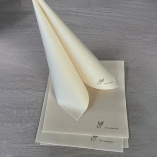 Tovagliolo in carta a secco di alta qualità e grammatura; materiale totalmente biodegradabile e compostabile, misto di cellulosa e leganti naturali. Estremamente morbido e assorbente,leggermente goffrato, con un effetto che ricorda la tramatura del tessuto.