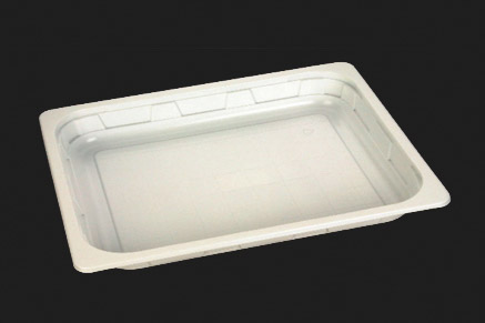 Vaschetta gastronomia/catering bianca in polipropilene, dimensione gastronorm GN 1/2, disponibile in diverse altezze. Per alimenti freddi e caldi, sopporta temperature da -40°C a +120°C. Utilizzabile in forno a microonde.
