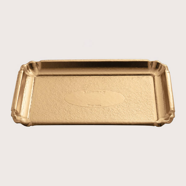 Il caratteristico angolo a foglia lo rende innovativo e unico nel suo genere collocandolo al vertice delle produzioni attuali. Il fondo del vassoio presenta una elegante decorazione che unita ad un delicato ovalino permette la personalizzazione in pressio