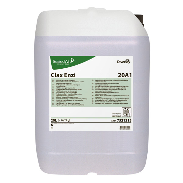 Detergente concentrato a base di tensioattivi ed enzimi per sporco proteico. Combinato con additivo alcalino/detergente garantisce eccellenti risultati su sporco grasso e olio.