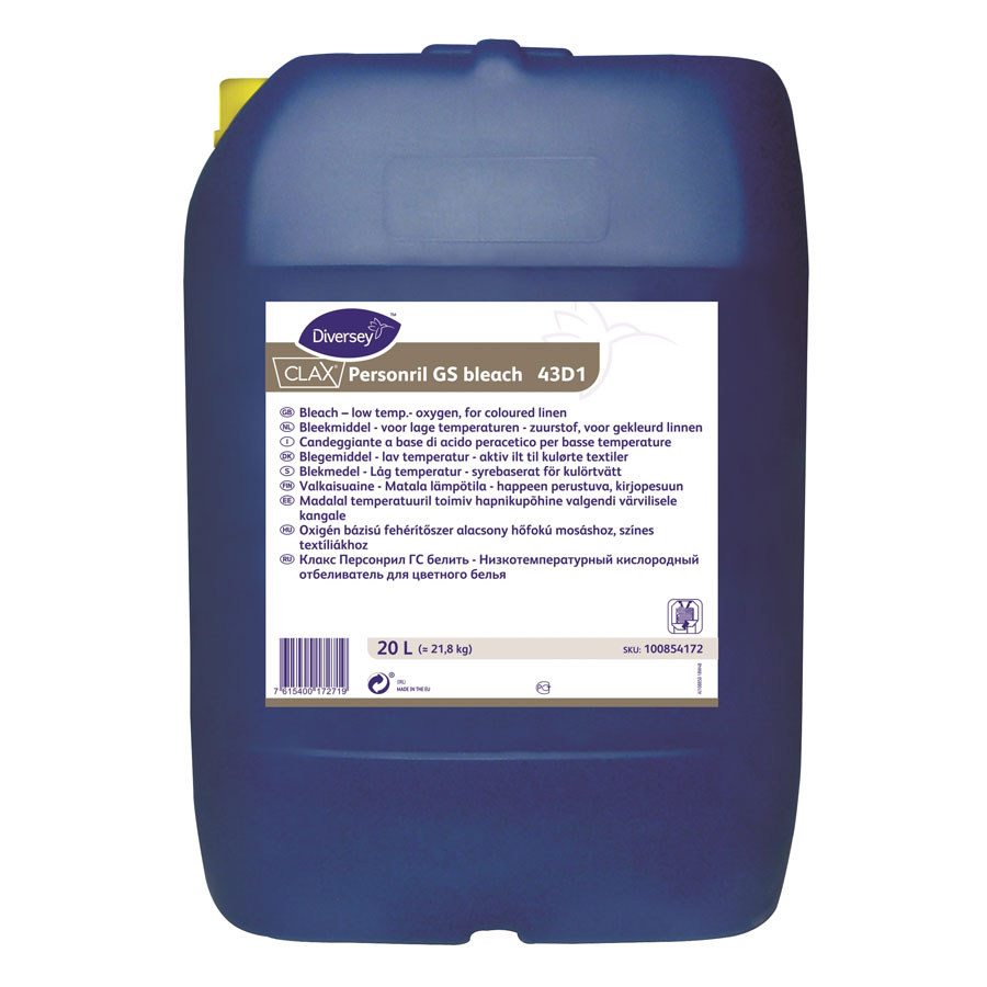 Candeggiate stabile ed efficace per medie temperature basato su una miscela di acido peracetico, acqua ossigenata e stabilizzanti. Può essere utilizzato per il trattamento di tutti i tipi di biancheria (eccetto lana e nylon), incluso tessuti colorati, a 4