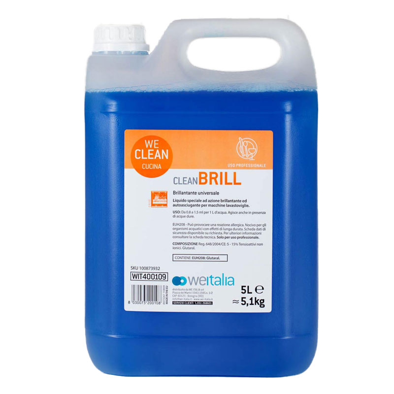 Brillantante neutro liquido per lavastoviglie e lavabar appositamente formulato per il dosaggio automatico. Indicato per le acque dolci e di media durezza.